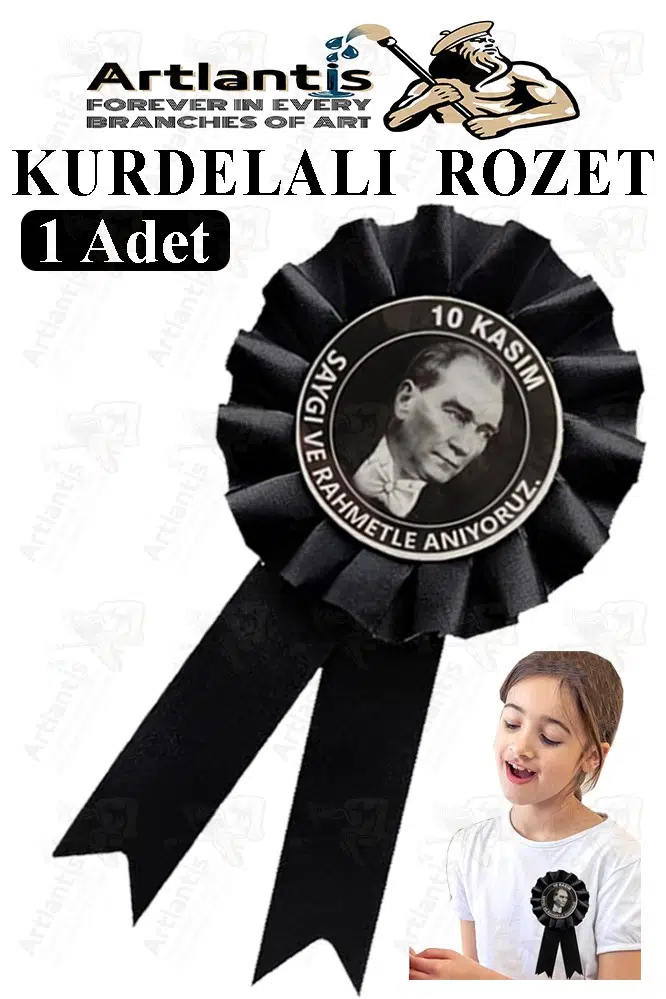 Ürün Adı: Artlantis 10 Kasım Atatürk Kurdelalı Rozet 1 Adet Siyah Yaka Rozeti Çocuk Bayram Etkinlik 15 cm Kokart