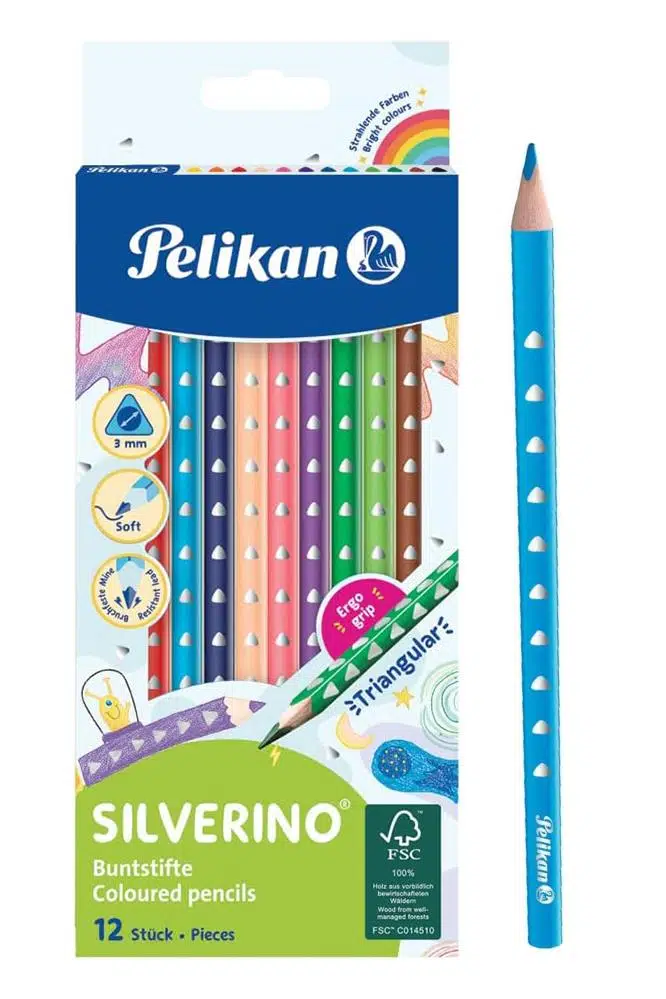 Ürün Adı: 12 li Kuru Boya Kalemi Karton Kutu 1 Paket 12 Renk Üçgen Tutum Silverino Kuruboya Tam Boy Renkli Kalem