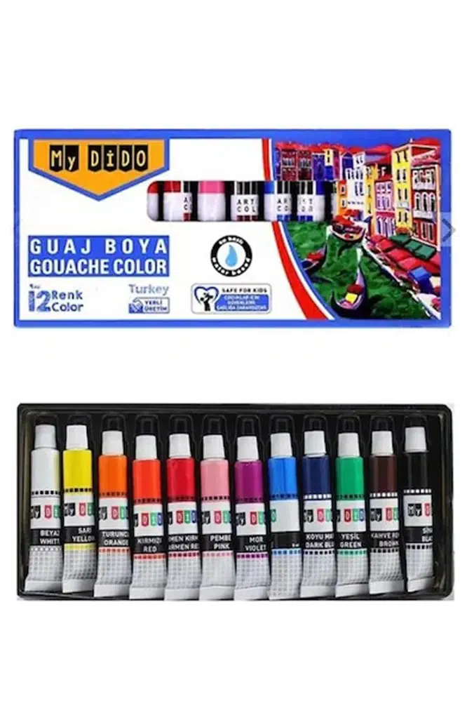 Etiketler12 Renk Guaj Boya Mydido 25x35 cm Telli Spralli Resim Defteri Palet Resim Fırçası 15 Yaprak Guajboya Resim Defteri
