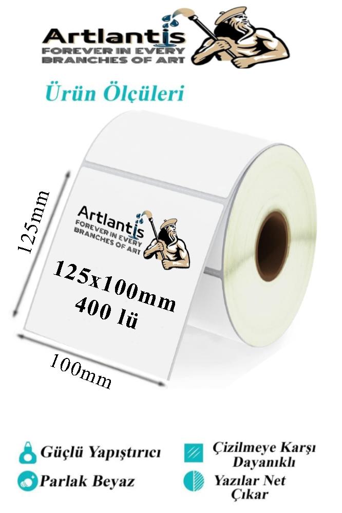 Ürün Adı: 125x105 mm Barkod Etiketi Yapışkanlı 6 Adet Rulo Etiket Termal Barkot Terazi Etiketi 400 lü Barkod Yazıcılara Uyumludur