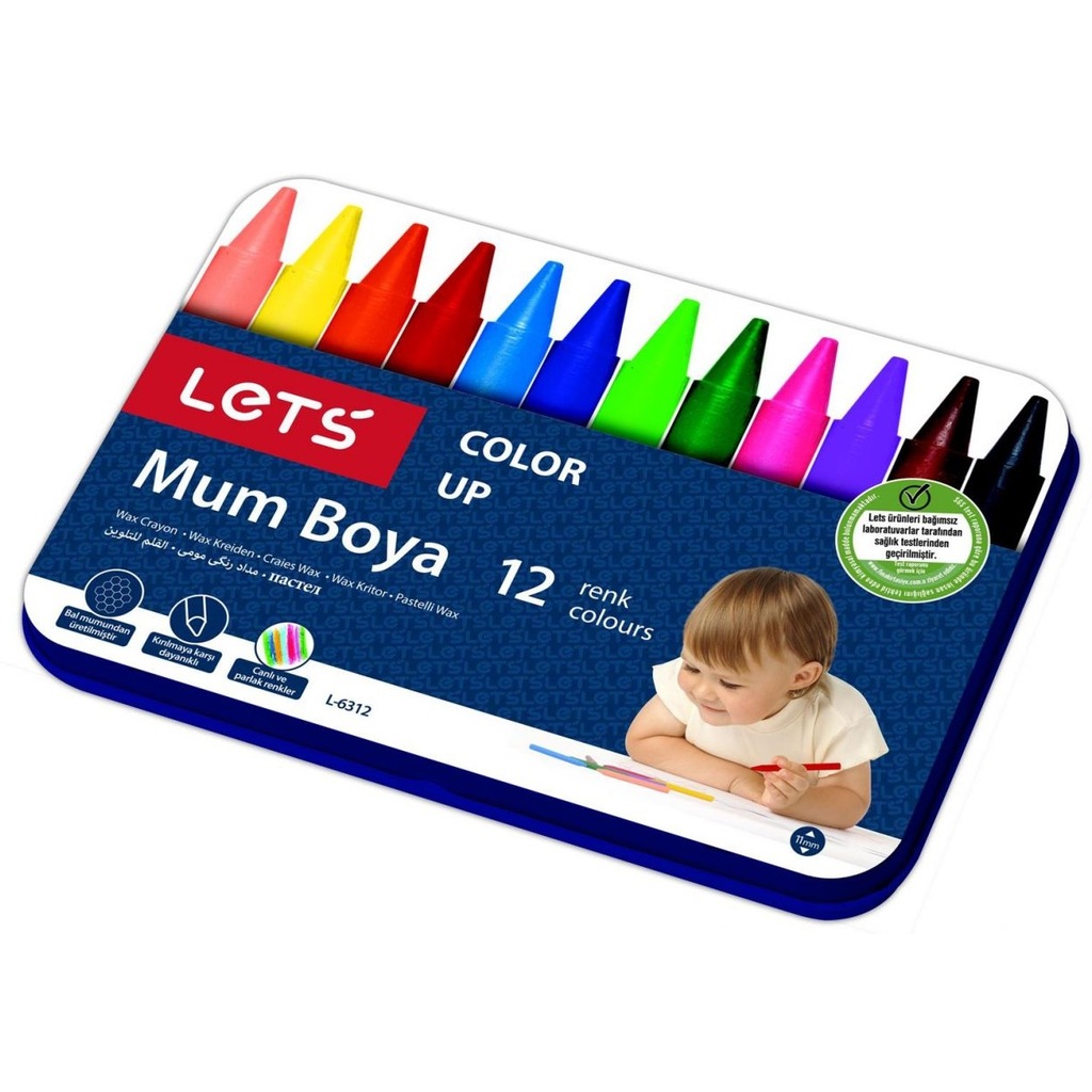 Etiketler12li Mum Boya Wax Crayon Teneke Kutu