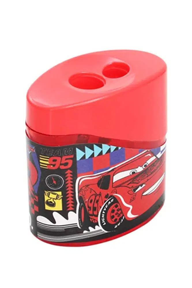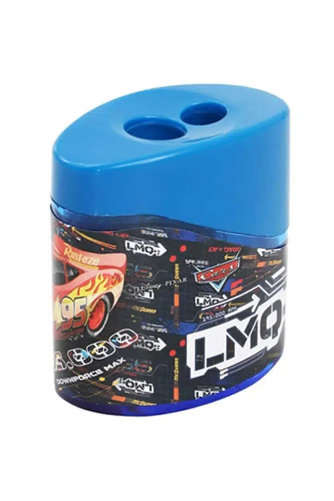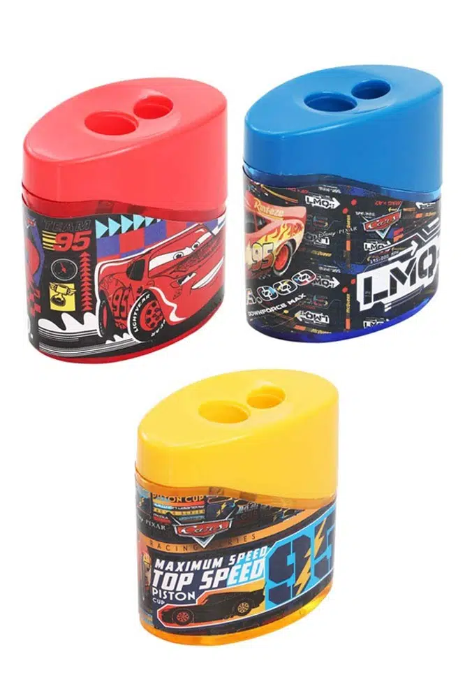 Ürün Adı: 2 li Kalemtraş 3 Adet Arabalar Kırmızı ve Mavi Geniş Hazneli Çift Bıçaklı Kalem Traş No4 Figürlü Jumbo Kalemtıraş