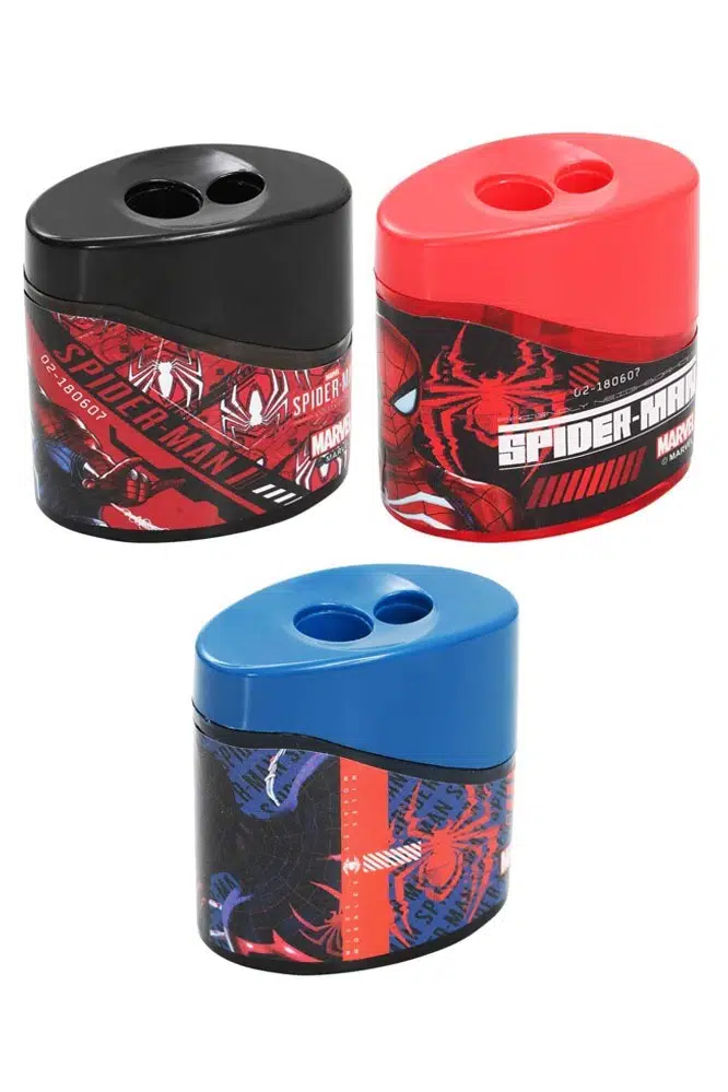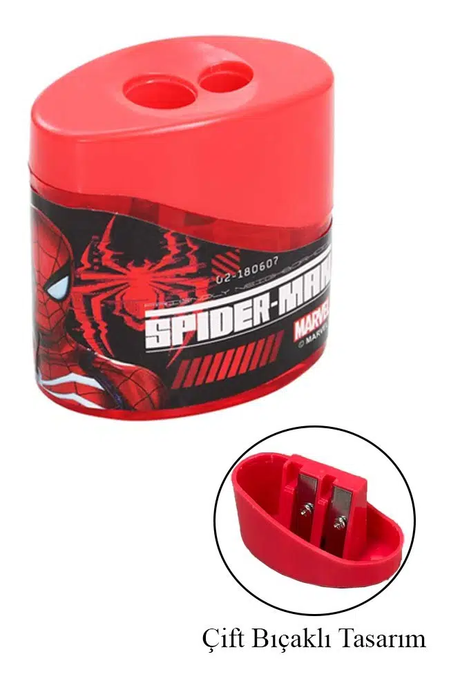 Ürün Adı: 2 li Kalemtraş 3 Adet Örümcek Adam Geniş Hazneli Çift Bıçaklı Kalem Traş No5 Figürlü Jumbo Kalemtıraş