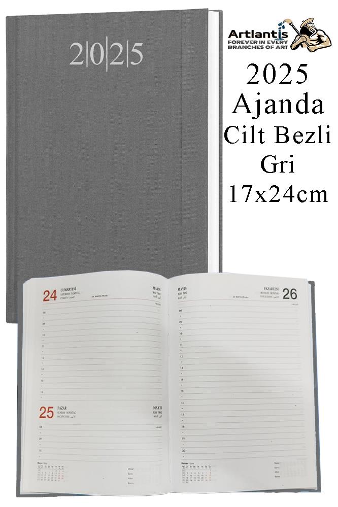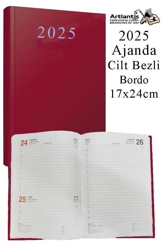 Ürün Adı: 2025 Ajanda 17x24 cm Çizgili Cilt Bezli Dikişli 1 Adet Günlük Planlayıcı Cilt Bezi Ciltli Ajanda 2025 Ofis Okul Büro