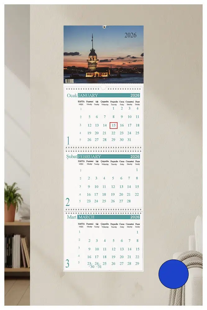 Ürün Adı: Artmaster 2026 Duvar Takvimi Manzara Resimli 3 Aylık Gemici Takvimi Resimli NO 2 Jumbo Boy Askılı Spiralli Takvim Yeni Yıl Mavi