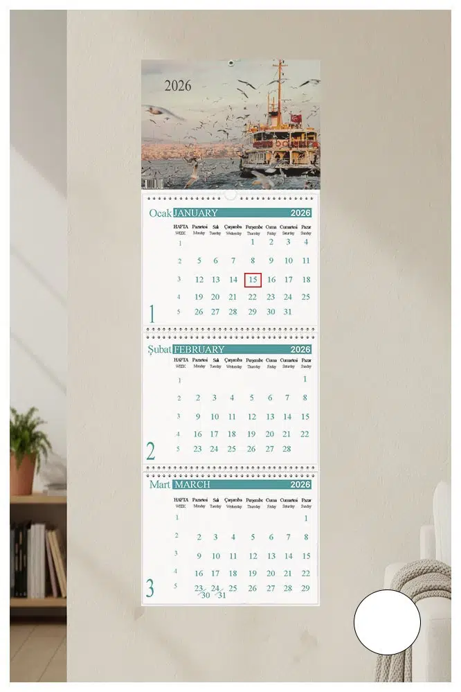 Ürün Adı: Artmaster 2026 Duvar Takvimi Manzara Resimli 3 Aylık Gemici Takvimi Resimli NO 4 Jumbo Boy Askılı Spiralli Takvim Yeni Yıl Beyaz