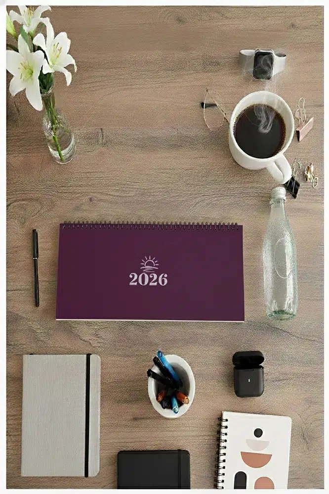 Ürün Adı: 2026 Mor Masa Takvimi Haftalık 1 Adet Düz Renk Ajanda Spiralli 12 Aylık Masaüstü Takvimi Masaüstü Planlayıcı