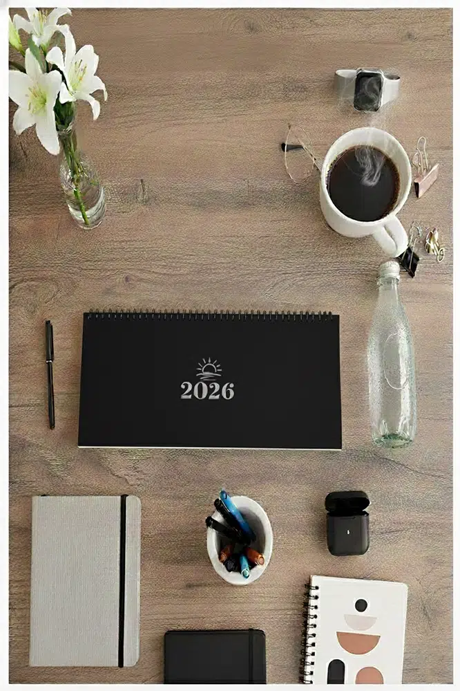 Ürün Adı: 2026 Siyah Masa Takvimi Haftalık 1 Adet Düz Renk Ajanda Spiralli 12 Aylık Masaüstü Takvimi Masaüstü Planlayıcı