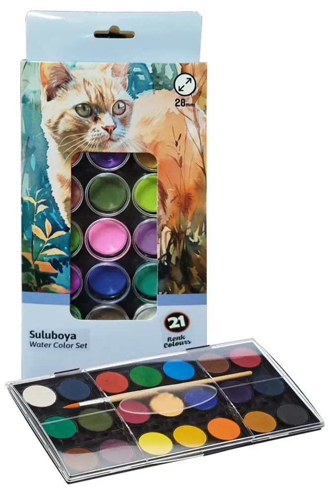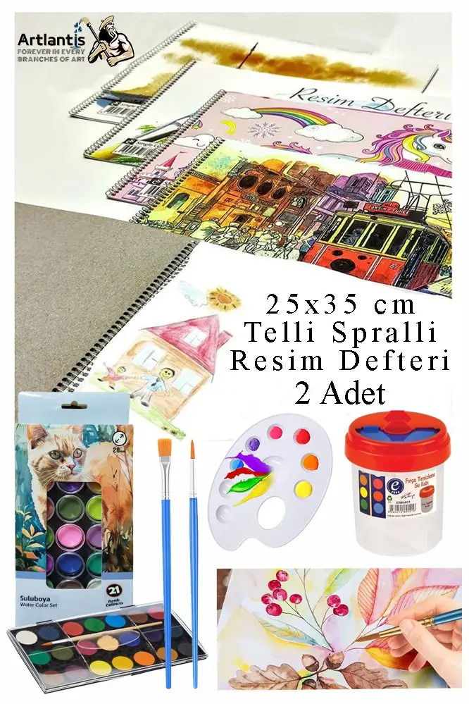 Ürün Adı: 21 Renk Brons Sulu Boya 25x35 cm Telli Spralli Resim Defteri Resim Paleti Resim Fırçası Temizleme Kabı Suluboya Okul