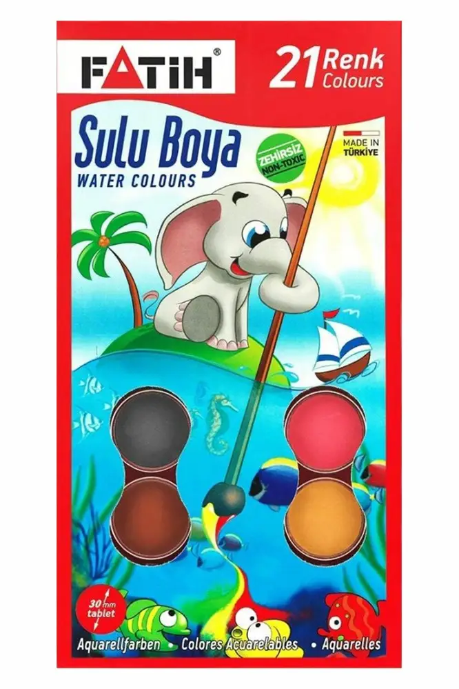 Ürün Adı: 21 Renk Fatih Sulu Boya 25x35 cm Telli Spralli Resim Defteri Resim Paleti Resim Fırçası Temizleme Kabı Suluboya Okul