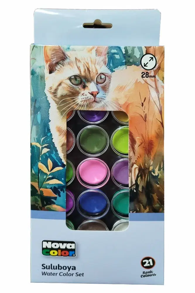Ürün Adı: 21 Renk Sulu Boya 1 Paket Fırça Hediyeli 21 li Suluboya Canlı Renkler 28 mm Boya Çapı Büyük Boy