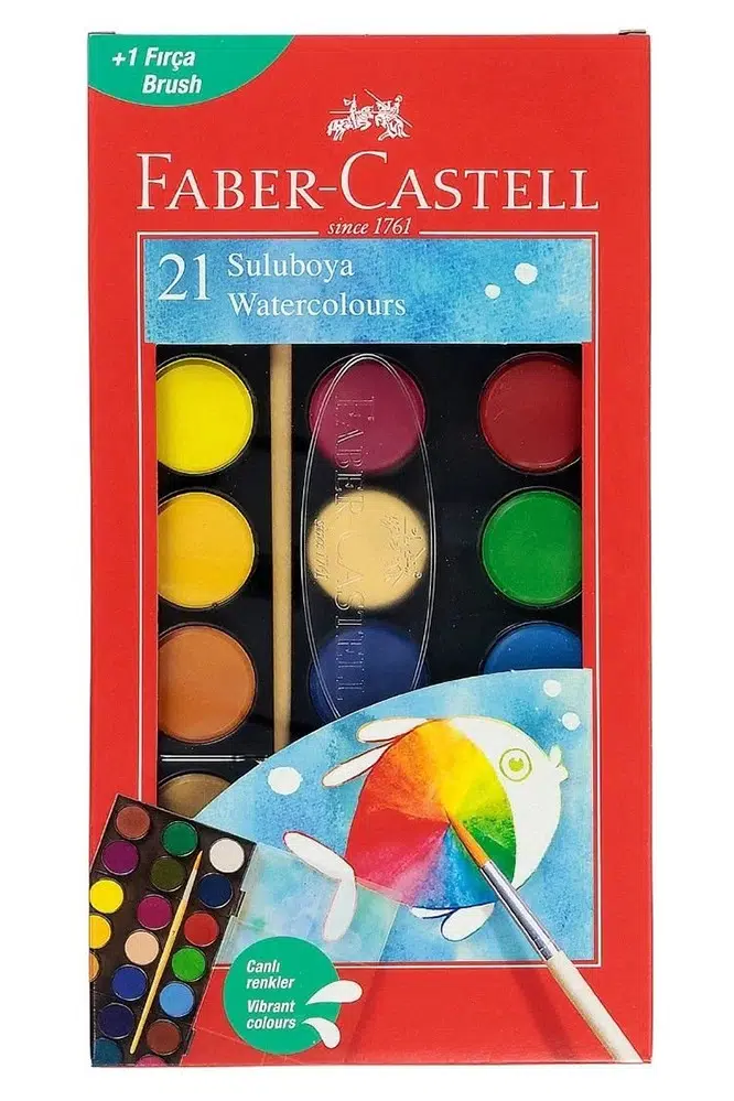 Fırça Seti 4 lü Pastel Renkli Fırça Temizleme Kabı ve Resim Paleti 1 Adet Faber Castell Fırça Takımı ve Resim Paleti Su Kabı