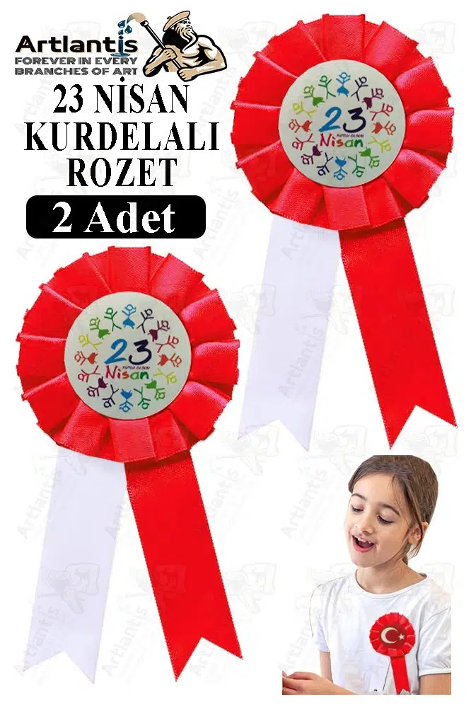 Ürün Adı: Artlantis 23 Nisan Kurdelalı Rozet 2 Adet Kırmızı Beyaz Yaka Rozeti Çocuk Bayram Etkinlik 15 cm Kokart