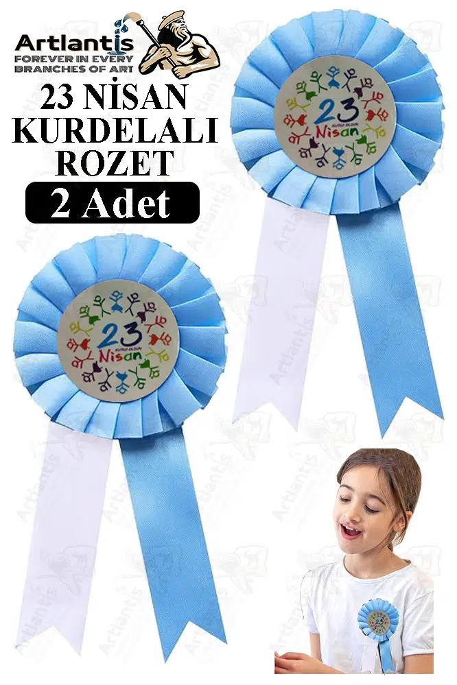 Ürün Adı: Artlantis 23 Nisan Kurdelalı Rozet 2 Adet Mavi Beyaz Yaka Rozeti Çocuk Bayram Etkinlik 15 cm Kokart