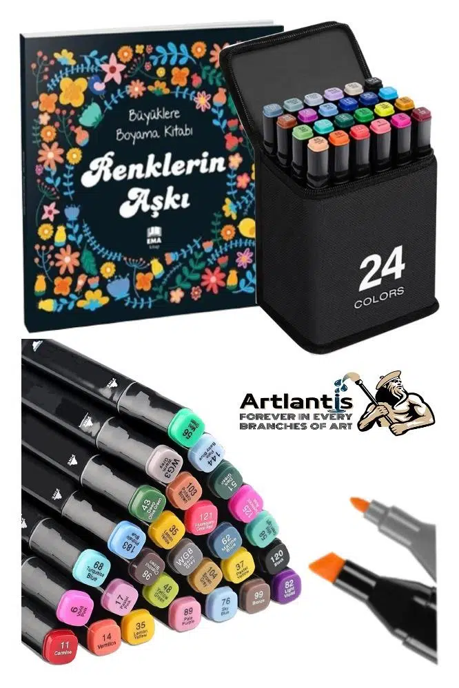 | Etiketler | 24 Adet Çift Taraflı Marker Kalem Çantalı 1 Paket 24 Renk Touch Markör Renklerin Aşkı Mandala Büyüklere Boyama Kitabı |