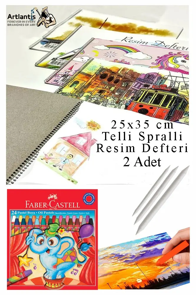 Ürün Adı: 24 Renk Pastel Boya 25x35 cm Telli Spralli Resim Defteri Pastel Dağıtma Kalemi 15 Yaprak Resim Defteri Yağlı Pastel