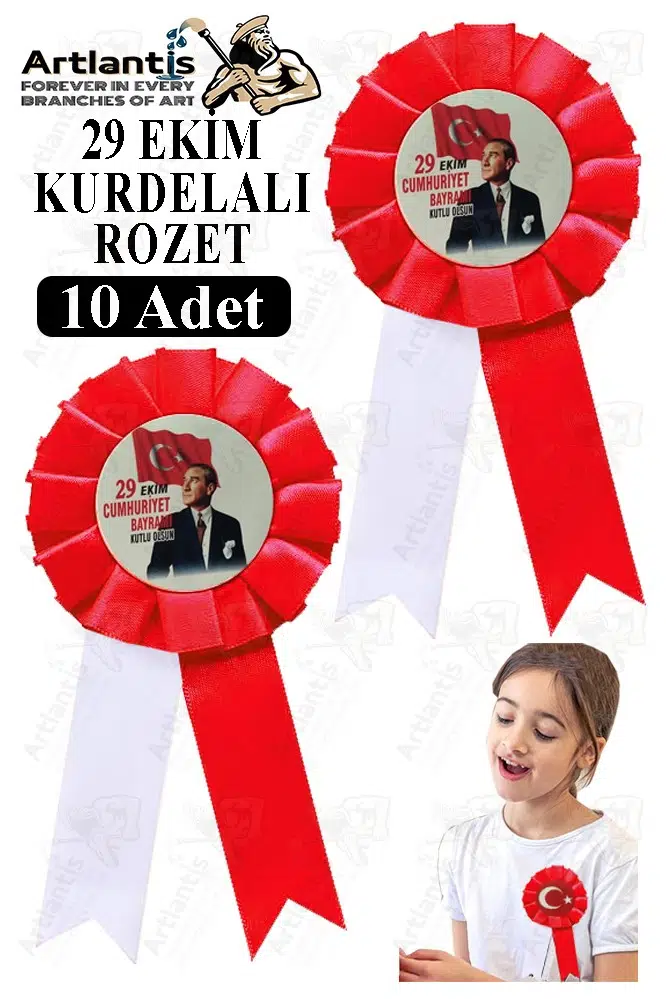 Ürün Adı: Artlantis 29 Ekim Atatürk Kurdelalı Rozet 10 Adet Kırmızı Beyaz Yaka Rozeti Çocuk Bayram Etkinlik 15 cm Kokart
