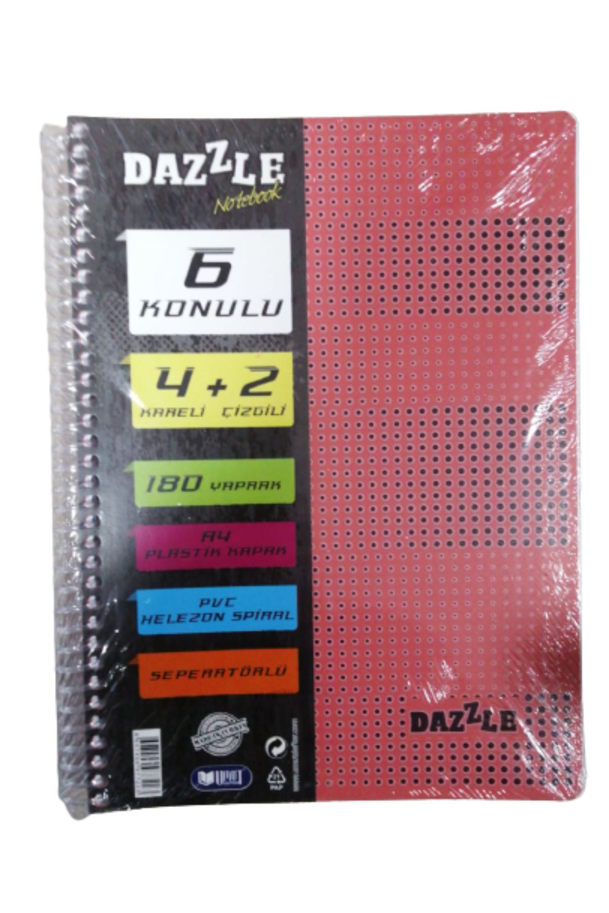 4+2 defter Plastik Kapak Spralli A4 4 kare 2 çizgili 180 Yaprak