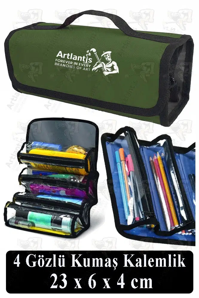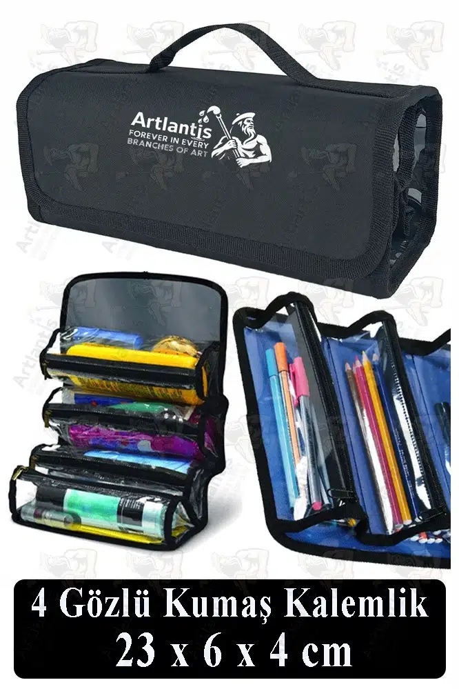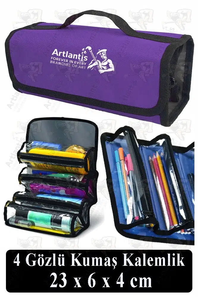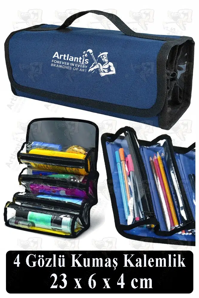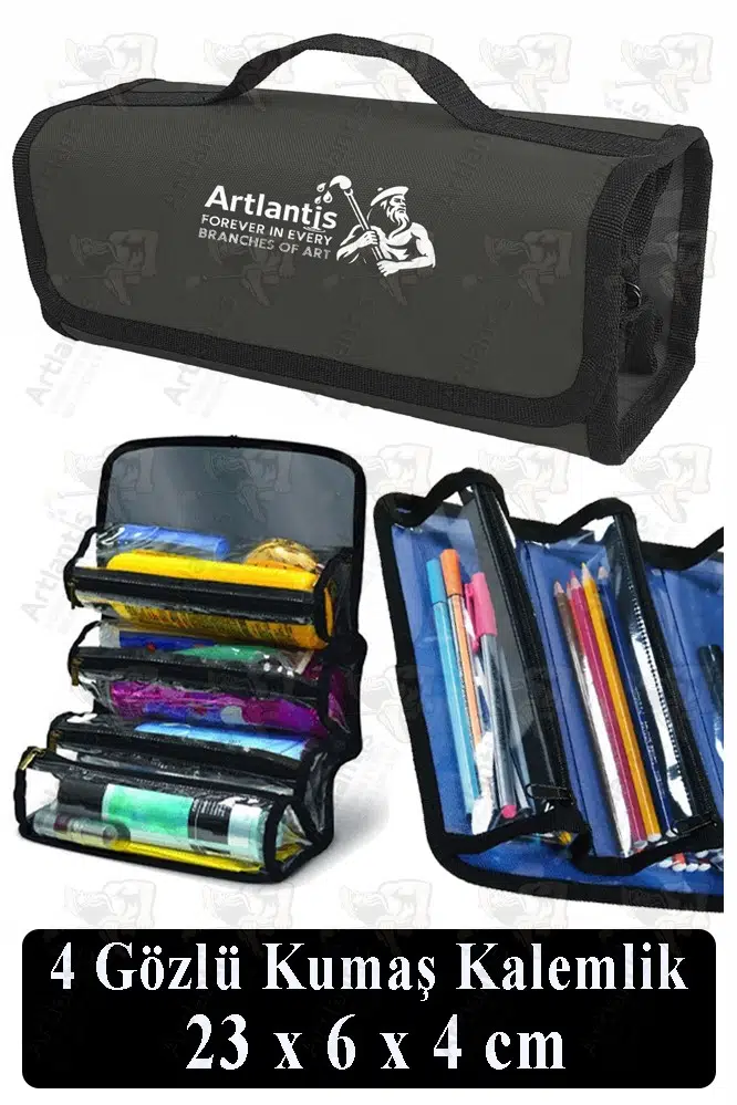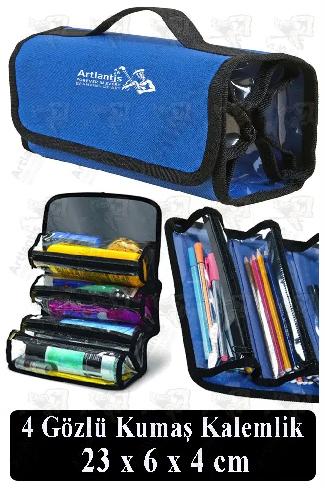 Ürün Adı: 4 Gözlü Kalem Çantası 1 Adet Dört Bölümlü Kalemlik Sanatsal Şeffaf Bölmeli Kulplu Taşınabilir Kumaş Kalemlik