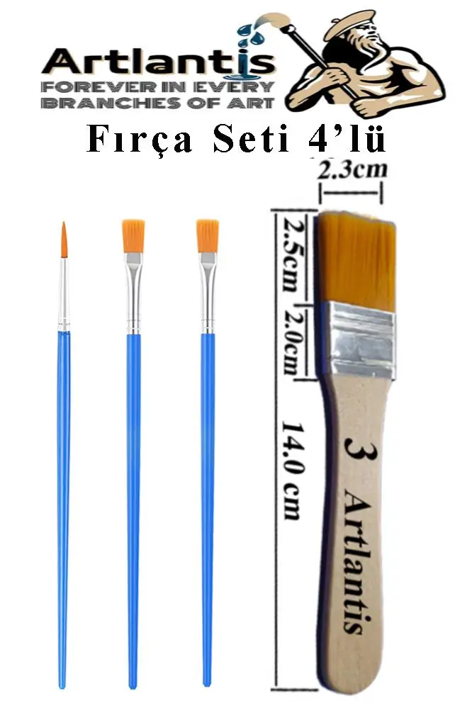 Ürün Adı: 4'lü Fırça Seti 1 Paket 3 Numara Zemin Fırçalı Set Akrilik Boya Yağlı Boya Guaj Boya Sulu Boya Sanatsal