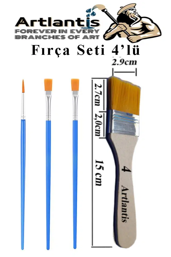 Ürün Adı: 4'lü Fırça Seti 1 Paket 4 Numara Zemin Fırçalı Set Akrilik Boya Yağlı Boya Guaj Boya Sulu Boya Sanatsal