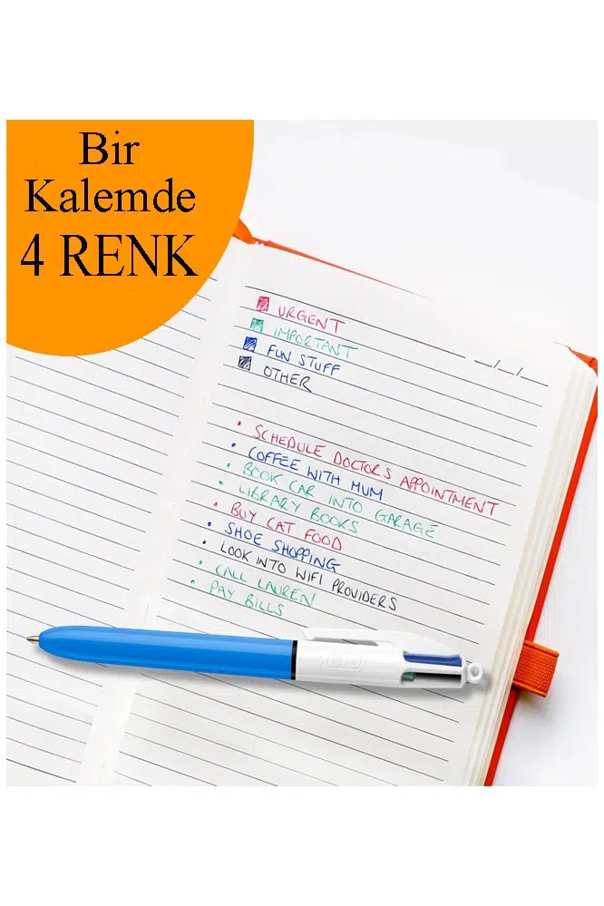BIC 4 Renkli Orijinal Geri Çekilebilir Tükenmez KalemÇok yönlü yazma görevleri için tek bir çok renkli kalemde dört mürekkep renginin rahatlığının keyfini çıkarın