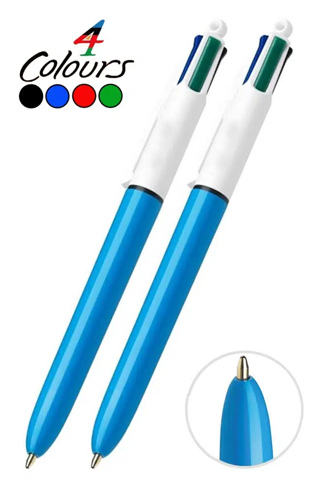 Ürün Adı: 4 Renk Tükenmez Kalem 2 Adet Bic Dört Renk Tükenmez Kalem Siyah Mavi Kırmızı Yeşil Basmalı Yaylı Otomatik Büro Ofis Okul