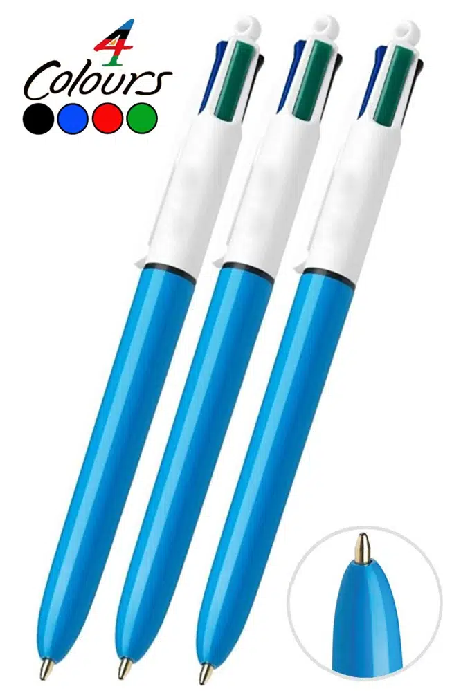 Ürün Adı: 4 Renk Tükenmez Kalem 3 Adet Bic Dört Renk Tükenmez Kalem Siyah Mavi Kırmızı Yeşil Basmalı Yaylı Otomatik Büro Ofis Okul
