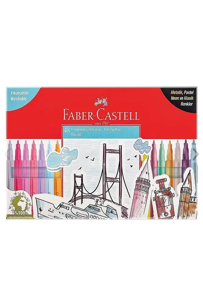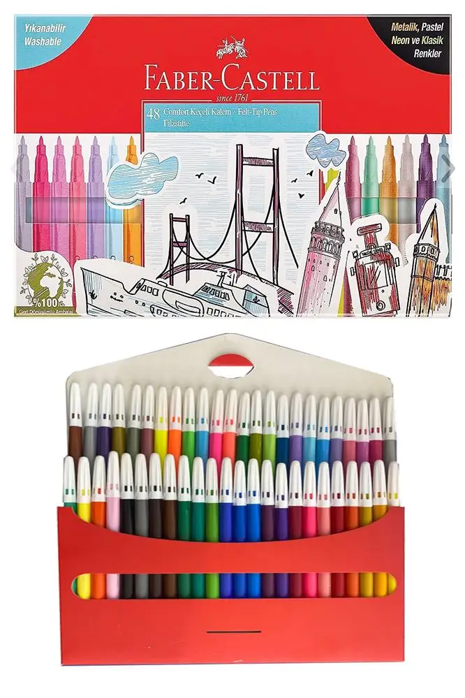 | Etiketler | 48 Renk Keçeli Kalem Yıkanabilir Su Bazlı 1 Paket Faber 48 li Keçeli Kalem Metalik Pastel Neon ve Klasik Renkler |