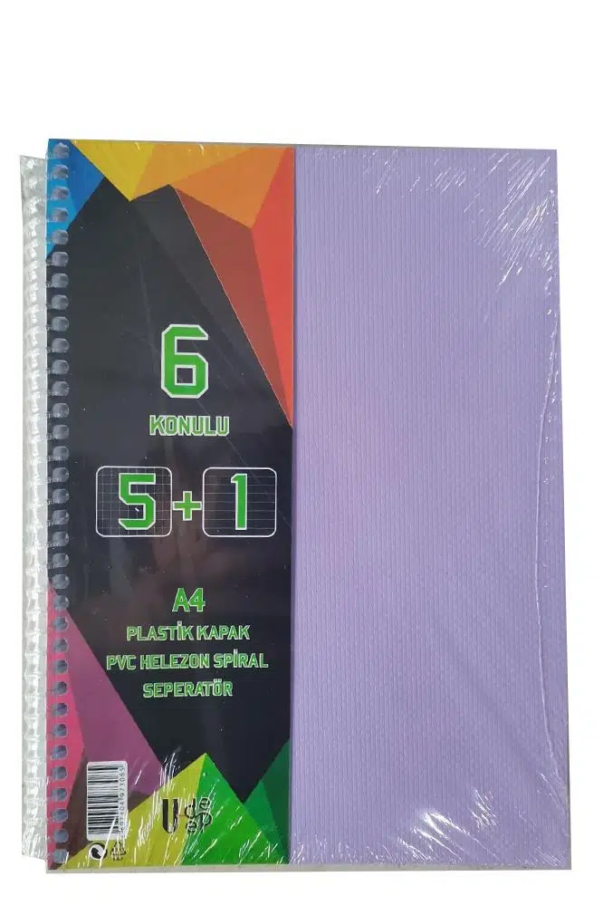 Ürün Adı: 5+1 Ayraçlı Defter 6 Konulu 150 Yaprak 1 Adet 5 Kareli 1 Çizgili Spralli Plastik Kapak Seperatörlü