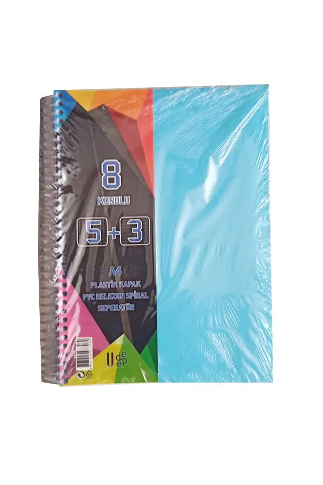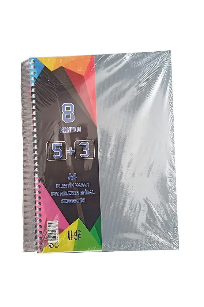 Ürün Adı: 5+3 Ayraçlı Defter 8 Konulu 200 Yaprak 1 Adet 5 Kareli 3 Çizgili Spralli Plastik Kapak Seperatörlü