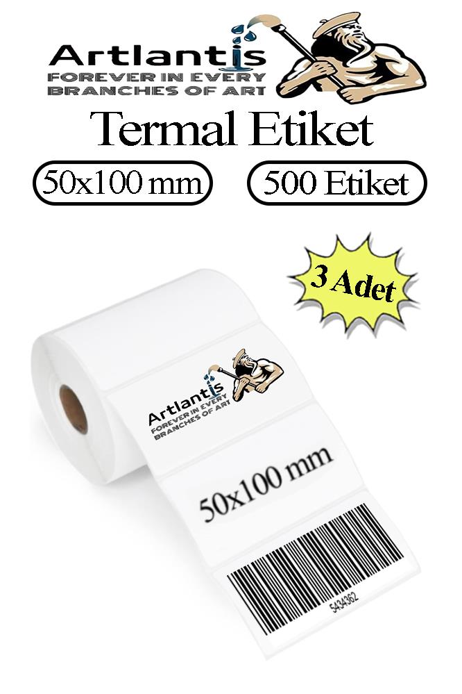 Ürün Adı: 50x100 mm Barkod Etiketi Yapışkanlı 3 Adet Rulo Etiket Termal Barkot Terazi Etiketi 500 lü Barkod Yazıcılarına Uyumludur