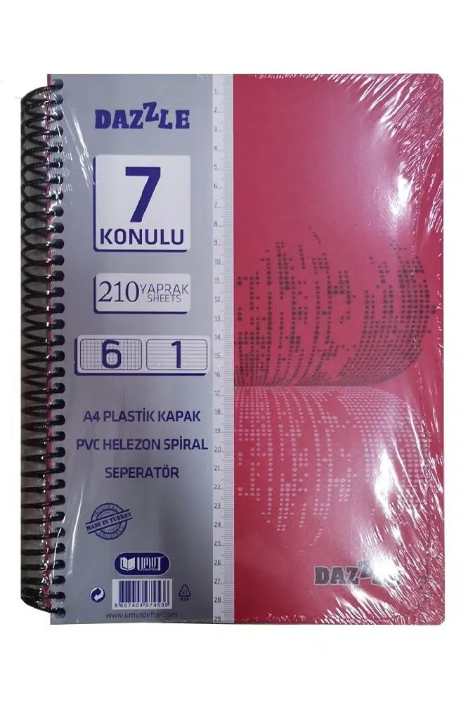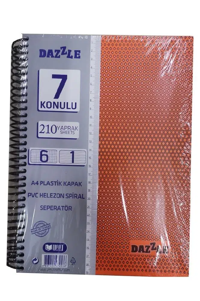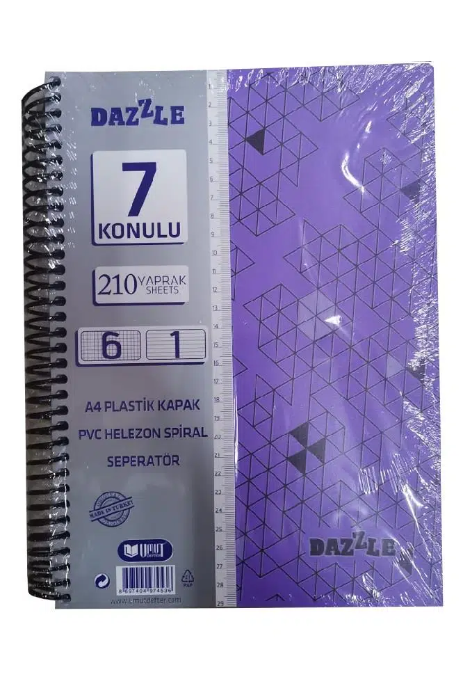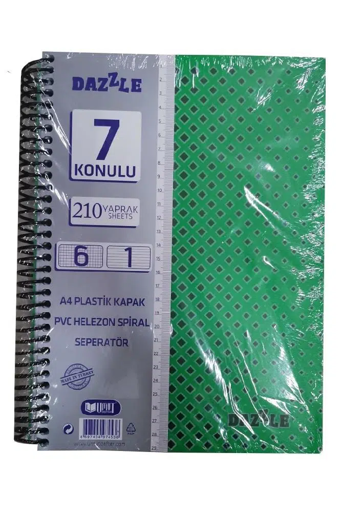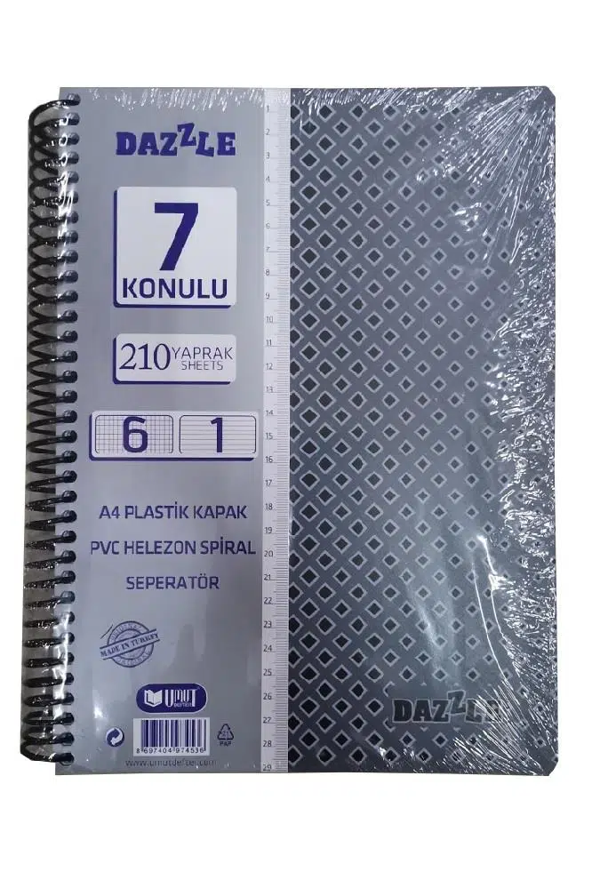 Ürün Adı: 6+1 Ayraçlı Defter 7 Konulu 210 Yaprak 1 Adet 6 Kareli 1 Çizgili Spralli Plastik Kapak Seperatörlü