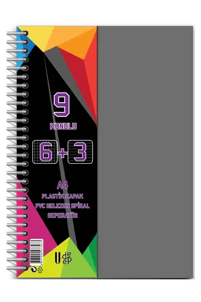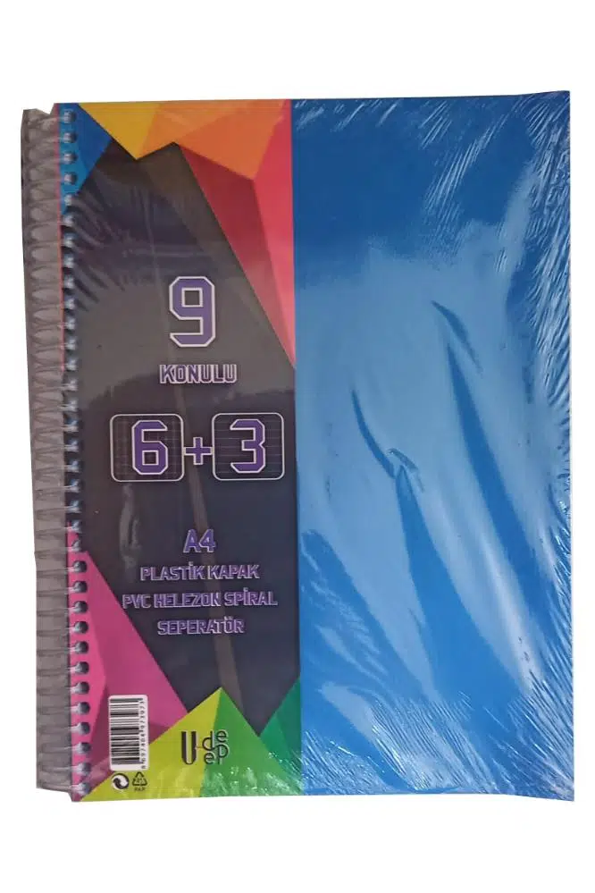 Ürün Adı: 6+3 Ayraçlı Defter 9 Konulu 225 Yaprak 1 Adet 6 Kareli 3 Çizgili Spralli Plastik Kapak Seperatörlü