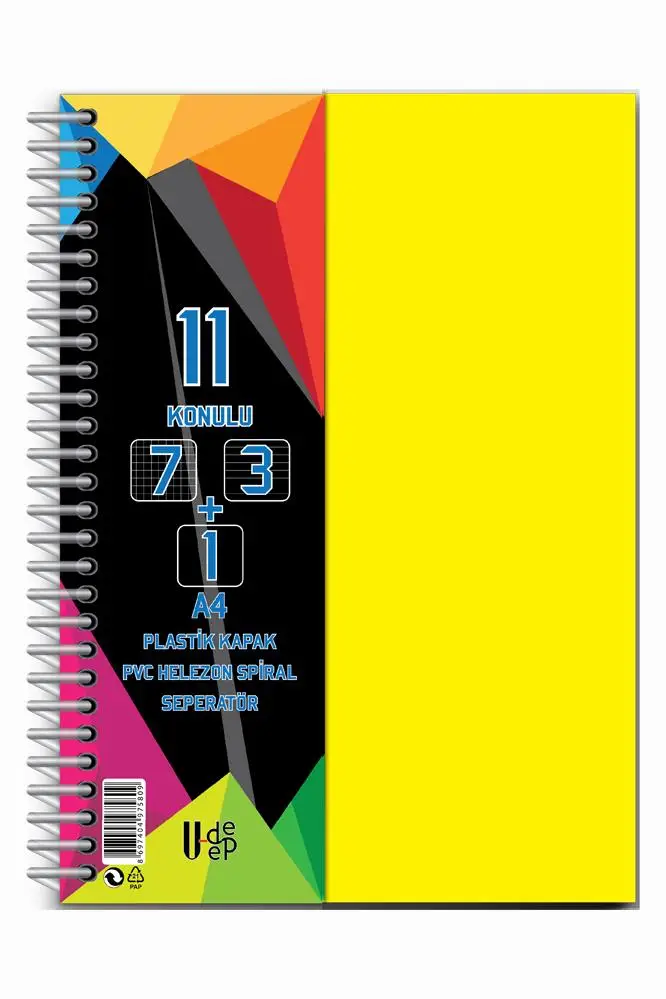 Ürün Adı: 7+3+1 Ayraçlı Defter 11 Konulu 225 Yaprak 1 Adet 7 Kareli 3 Çizgili 1 Çizgisiz Spralli Plastik Kapak Seperatörlü
