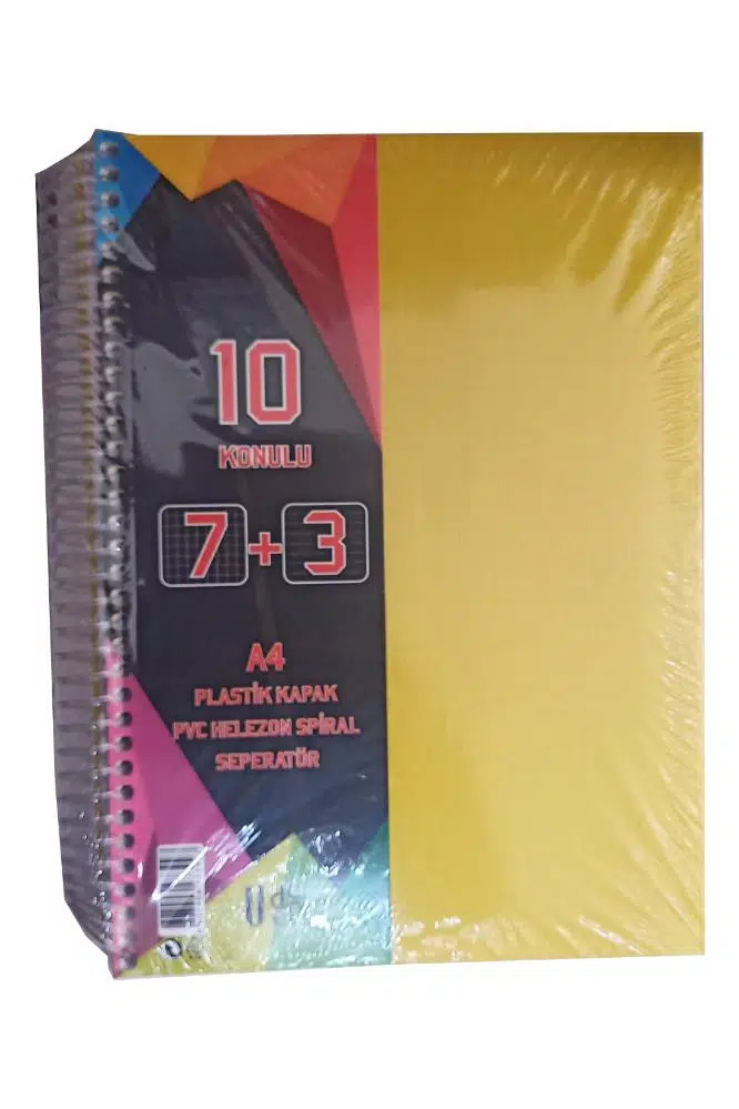 Ürün Adı: 7+3 Ayraçlı Defter 10 Konulu 300 Yaprak 1 Adet 7 Kareli 3 Çizgili Spralli Plastik Kapak Seperatörlü