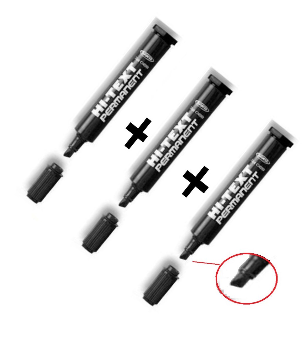 830.pc Siyah Kesik Uçlu Markör Permanent Kalem 3 Adet