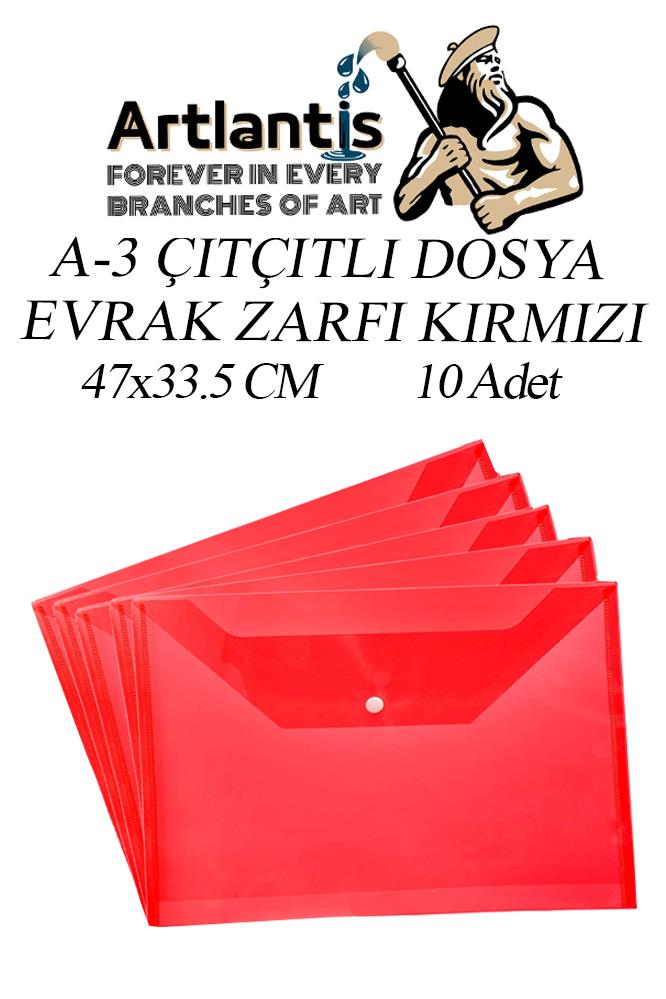 Ürün Adı: Artlantis A3 Çıtçıtlı Zarf Dosya Kırmızı 10 Adet