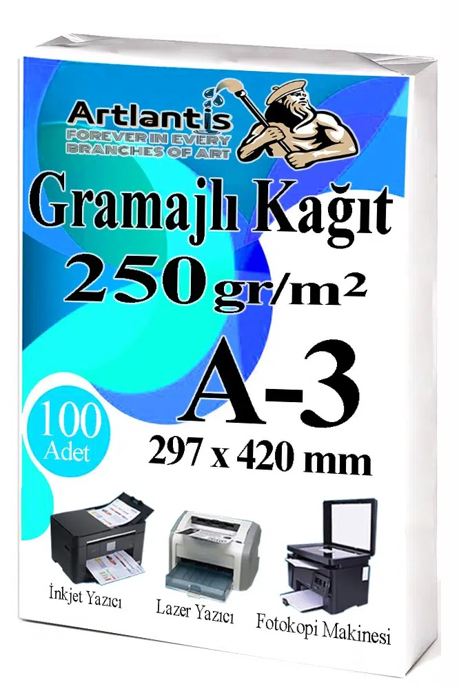 - Artlantis A3 Sertifika Kağıdı Kalın Kartuşlu Mürekkepli Tüm Yazıcılara Uygun 250 gr. (Tüm Yazıcılar için Optimum kalınlıktadır.) A3 (29,7cmx42cm) Sıvı Mürekkepli Yazıcılarda Dağılma Problemi olmaz. Mürekkebi hemen emer. Kartuşlu ve Lazer tüm yazıcılara uygundur.