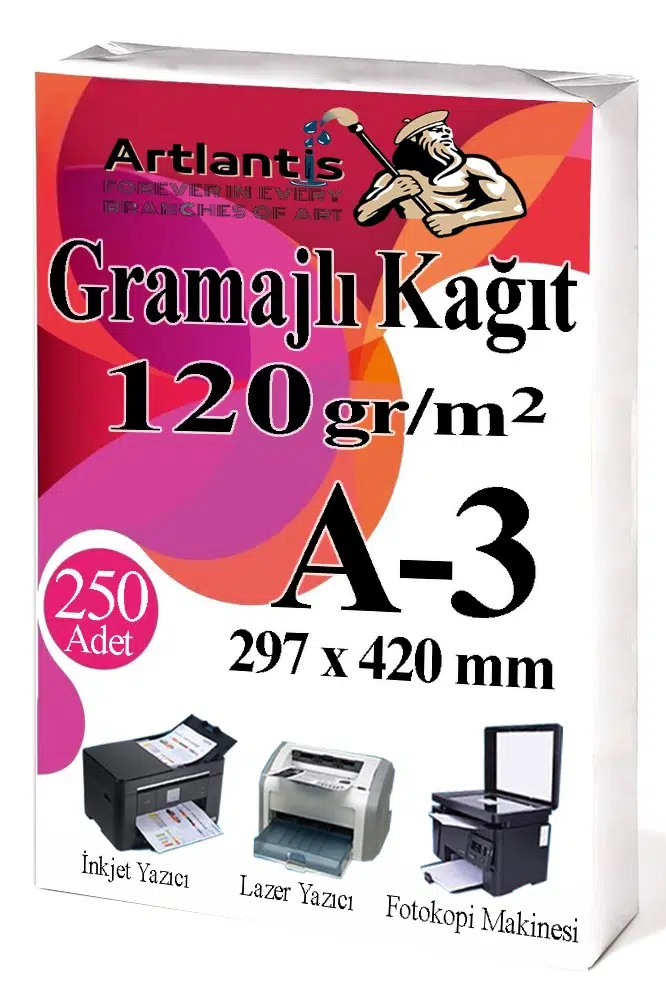 - Artlantis A3 Sertifika Kağıdı Kalın Kartuşlu Mürekkepli Tüm Yazıcılara Uygun 120 gr. (Tüm Yazıcılar için Optimum kalınlıktadır.) A3 (29,7cm x 42 cm) Sıvı Mürekkepli Yazıcılarda Dağılma Problemi olmaz. Mürekkebi hemen emer. Kartuşlu ve Lazer tüm yazıcılara uygundur.