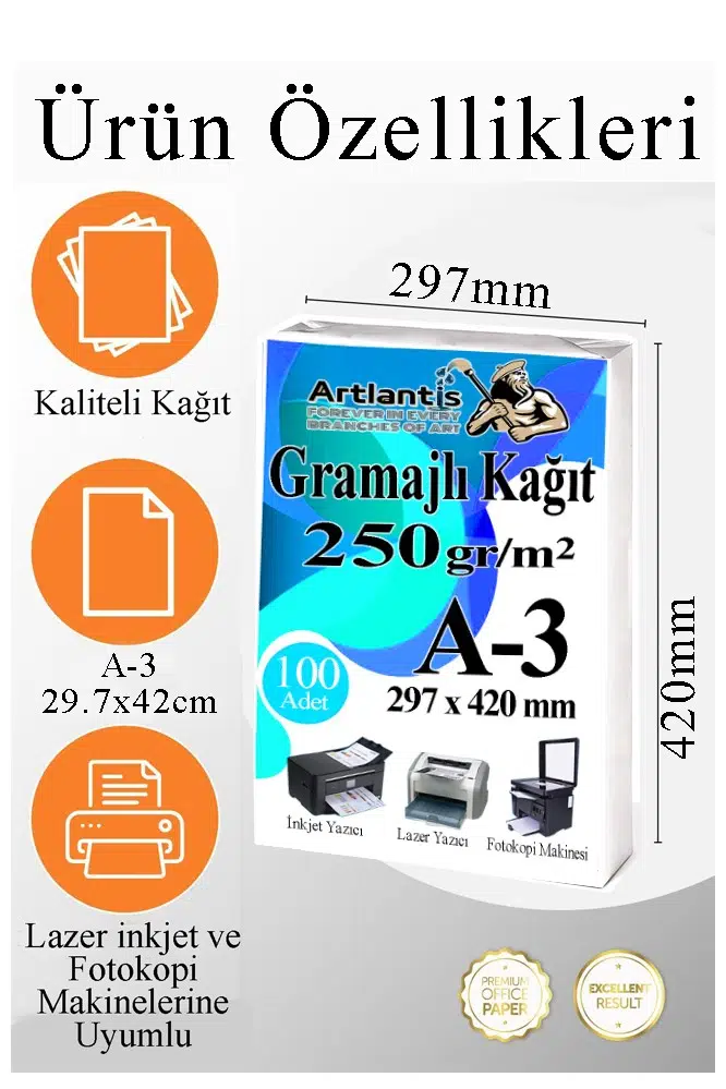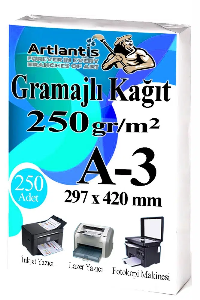 Ürün Adı: Artlantis A3 Gramajlı Fotokopi Kağıdı 250 Adet 250 gr Sertifika Kağıdı Kalın Kağıt Baskı Tüm Yazıcılara Uyumlu 29,7x42cm Ofis Büro