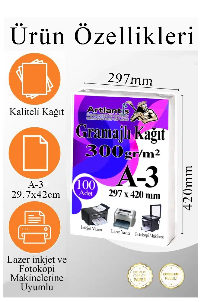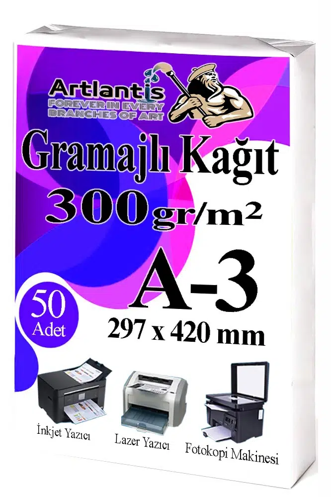 - Artlantis A3 Sertifika Kağıdı Kalın Kartuşlu Mürekkepli Tüm Yazıcılara Uygun 300 gr. (Tüm Yazıcılar için Optimum kalınlıktadır.) A3 (29.7cmx42cm) Sıvı Mürekkepli Yazıcılarda Dağılma Problemi olmaz. Mürekkebi hemen emer. Kartuşlu ve Lazer tüm yazıcılara uygundur.