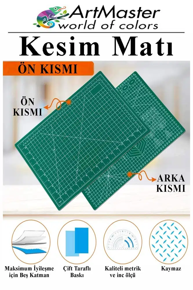 Ürün Adı: Artmaster A3 Kesim Matı 2 Adet 30x45 cm Çift Taraflı Çizim Matı Kesim Altlığı Kesme Madı Kesim Tablası Proje Etkinlik