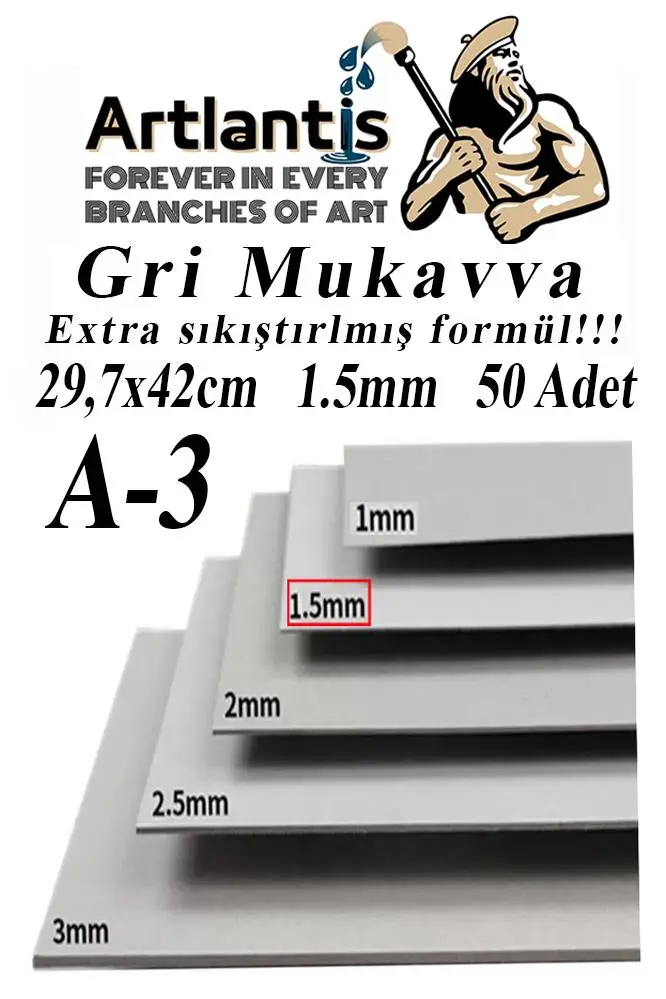 Ürün Adı: A3 Mukavva Gri 1,5 mm 50 Adet 1 Paket 29.7x42 cm A-3