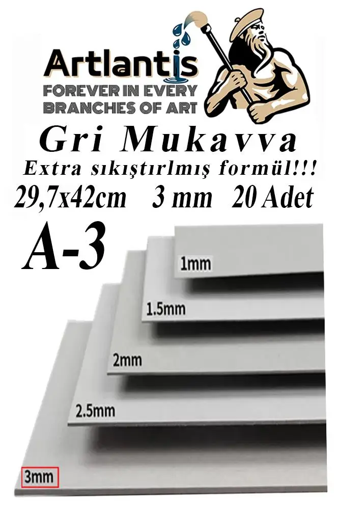Ürün Adı: A3 Mukavva Gri 3 mm 20 Adet 1 Paket 29.7x42 cm A-3