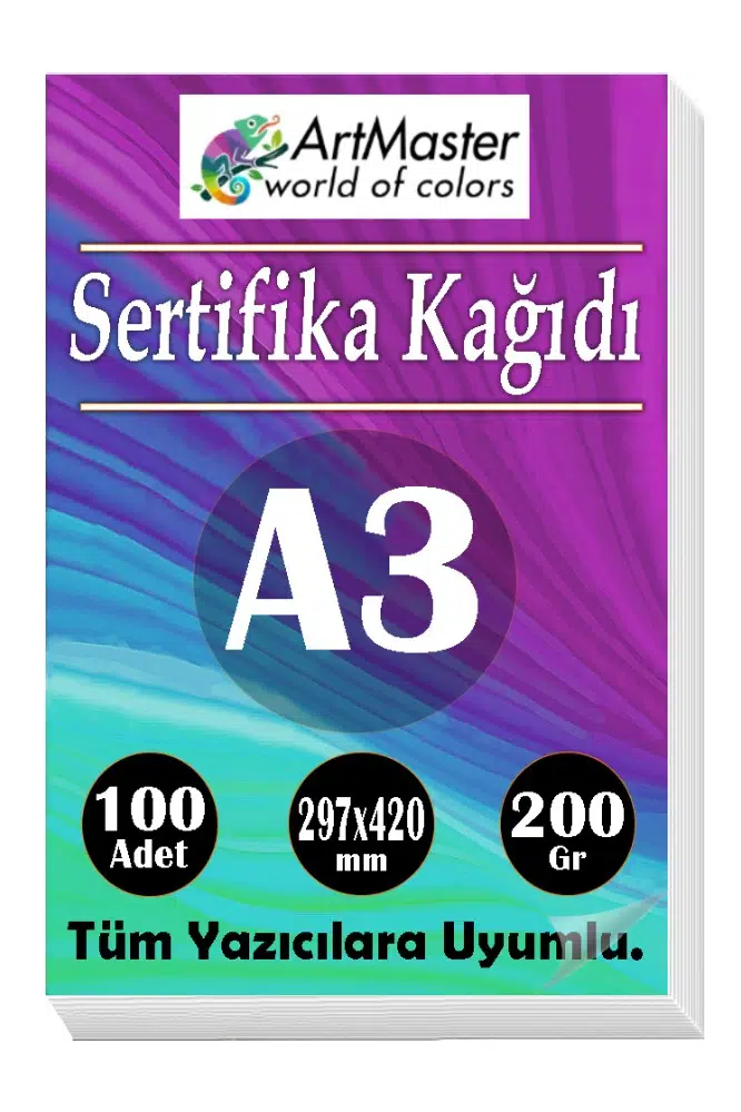 - A3 Sertifika Kağıdı Kalın Kartuşlu Mürekkepli Tüm Yazıcılara Uygun 200 Gr. (Tüm Yazıcılar için Optimum kalınlıktadır.) A3 (29,7x42cm) Sıvı Mürekkepli Yazıcılarda Dağılma Problemi olmaz. Mürekkebi hemen emer. Kartuşlu ve Lazer tüm yazıcılara uygundur.