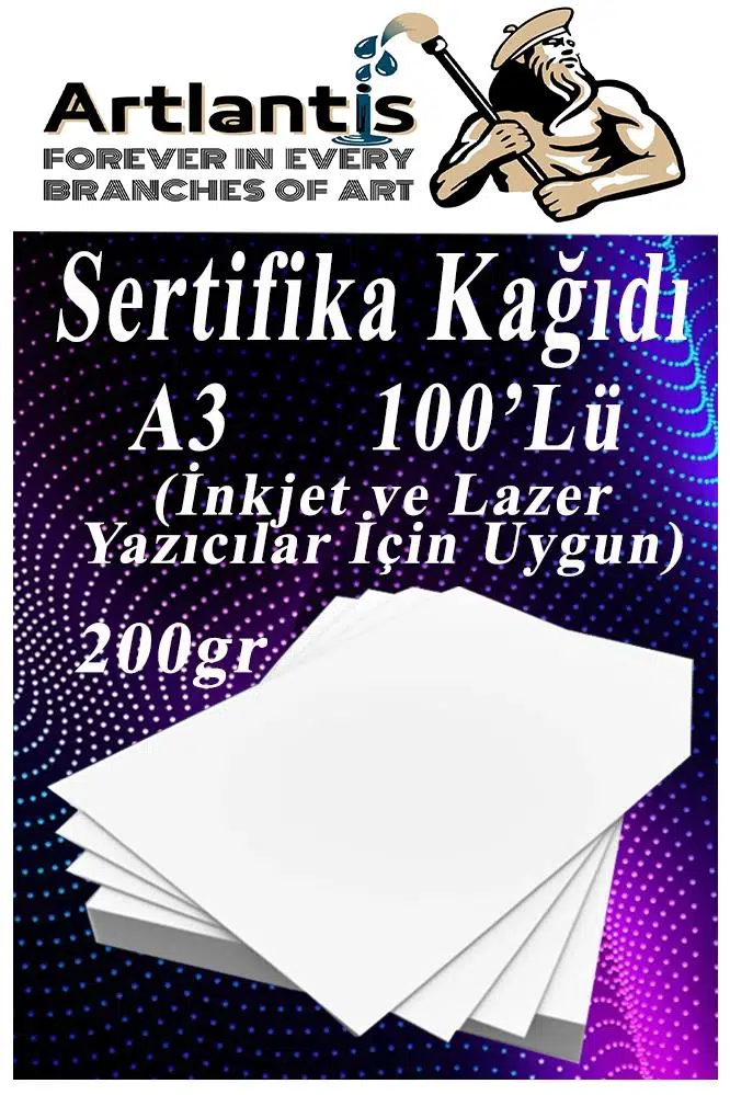 - A3 Sertifika Kağıdı Kalın Kartuşlu Mürekkepli Tüm Yazıcılara Uygun 200 Gr. (Tüm Yazıcılar için Optimum kalınlıktadır.) A3 (29,7x42cm) Sıvı Mürekkepli Yazıcılarda Dağılma Problemi olmaz. Mürekkebi hemen emer. Kartuşlu ve Lazer tüm yazıcılara uygundur.