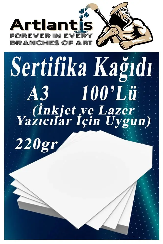 - A3 Sertifika Kağıdı Kalın Kartuşlu Mürekkepli Tüm Yazıcılara Uygun 220 Gr. (Tüm Yazıcılar için Optimum kalınlıktadır.) A3 (29,7x42cm) Sıvı Mürekkepli Yazıcılarda Dağılma Problemi olmaz. Mürekkebi hemen emer. Kartuşlu ve Lazer tüm yazıcılara uygundur.