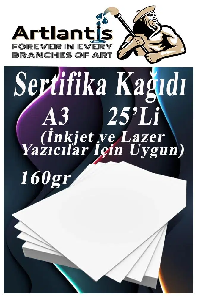 - A3 Sertifika Kağıdı Kalın Kartuşlu Mürekkepli Tüm Yazıcılara Uygun 160 Gr. (Tüm Yazıcılar için Optimum kalınlıktadır.) A3 (29,7x42cm) Sıvı Mürekkepli Yazıcılarda Dağılma Problemi olmaz. Mürekkebi hemen emer. Kartuşlu ve Lazer tüm yazıcılara uygundur.