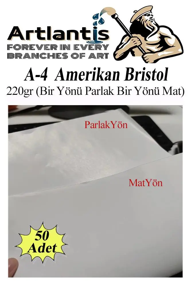 Ürün Adı: Amerikan Bristol Karton A4 21x29.7 cm 50 Adet 220 gr